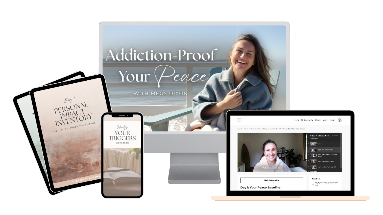 This is not a 30-day challenge to “feel calmer.” It’s your first 30 days of restoring emotional safety after addiction has eroded it. Before we can rebuild trust in the relationship, we have to rebuild emotional safety within you. Addiction Proof Your Peace is where that begins.